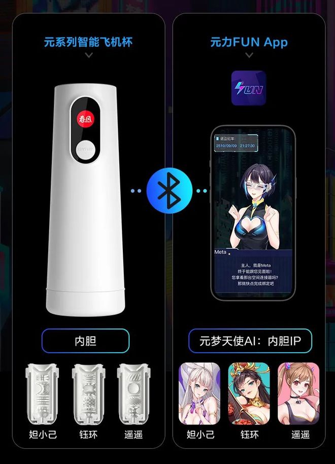 在元力FUN的赛博宇宙里,智能飞机杯被称为“空间连接器”,陪用户一起“冲”的虚拟女神,叫做“元梦天使”,而用户使用飞机杯的过程,就是向“空间连接器”注入元力的过程,也被称为“和元梦天使一起战斗”翻译成大白话就是:。