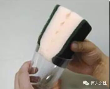 所需材料:洗碗海绵硬质塑料杯或玻璃杯塑胶手套人体用润滑剂 准备两块洗碗海绵和一只最普通的塑胶手套