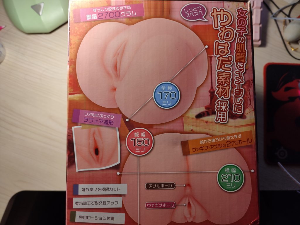 在我拿到快递的那一刻,它的大小就让我有些惊讶,大型机体也不是第一次用了,大到上千的生腰,小到四百不到的纯洁之腰,作为一款价位与纯洁之腰相近的机体,它的重量达到了更加夸张的2.7kg,比起2kg的纯洁之臀重量多了将近一半,当然,与动辄六七公斤的极上生腰是比不了,但也绝对算得上臀模中的大家伙了。