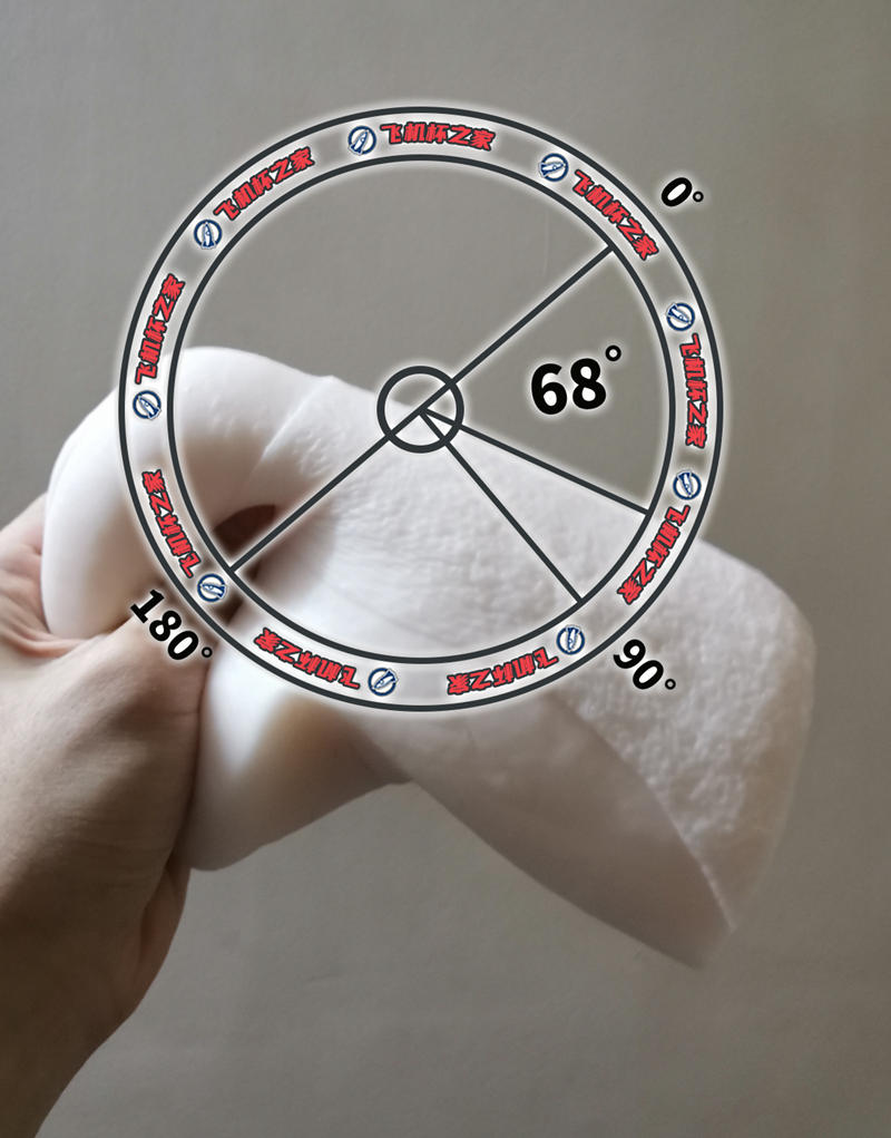 (测量方法:抓住胶体1/3向右倾斜45左右°,显示胶体的下垂度,倾斜角受材料硬度和身体长度的影响。这种方法不适用于大型胶体和双层材料,只能根据评估师的经验进行估计。)
