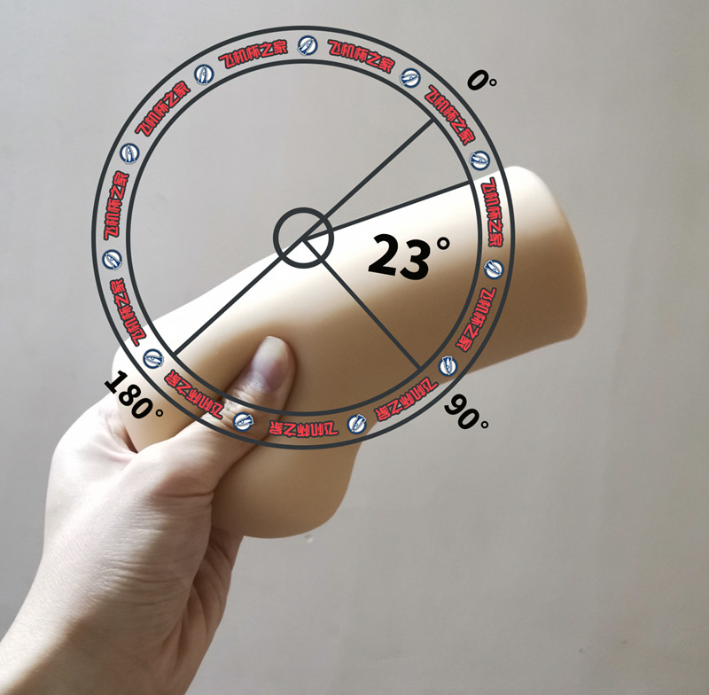 (测量方法:抓住胶体1/3处向右倾斜大概45°,展示胶体的下垂度数,倾斜角度受材质软硬度以及机体长度影响。大型胶体及双层材质不适用此方法,目前只能根据评测员经验来估摸。)