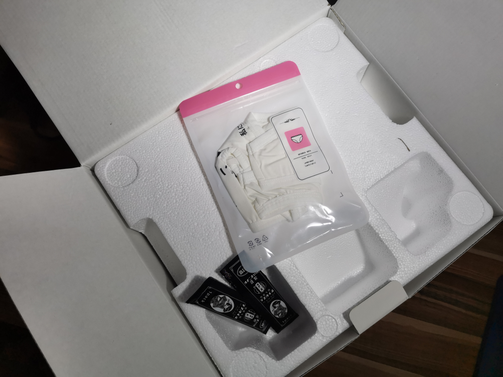 开封后是两层泡沫板的防震包装,还赠送了一条开档裤和两小包润滑液