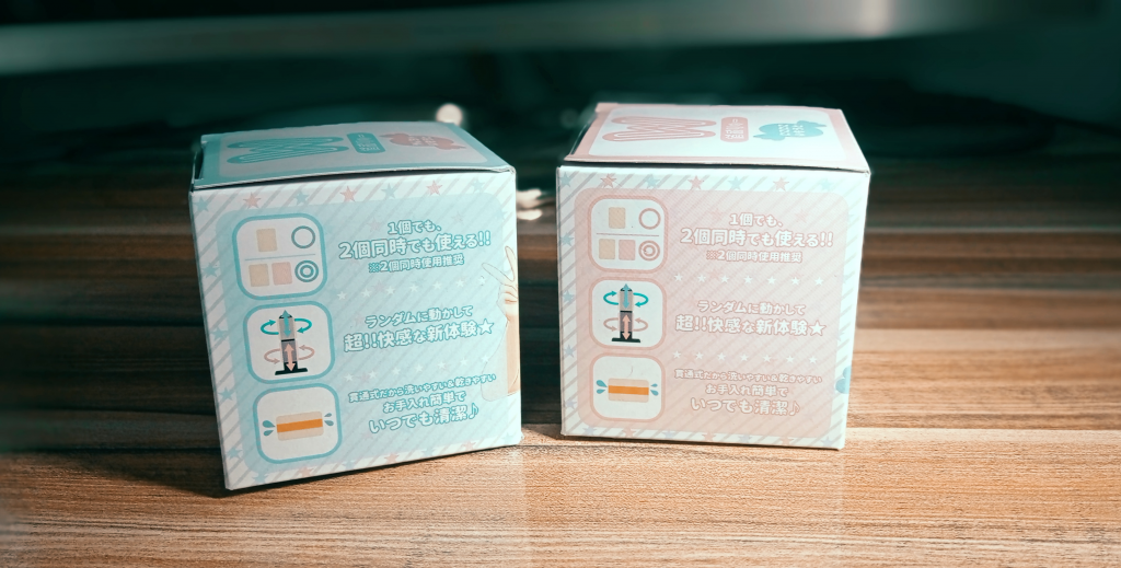 两个画风清新的方形盒子,蓝粉色调,看起来很阳光