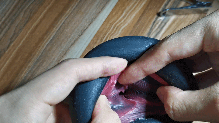 黑色圆孔入口之后是个做得还算不错的内阴唇,虽然这真实的阴唇跟外面设计不太搭,但主要目的是防止使用时润滑液外漏,搞得冲完后屌毛湿乎乎