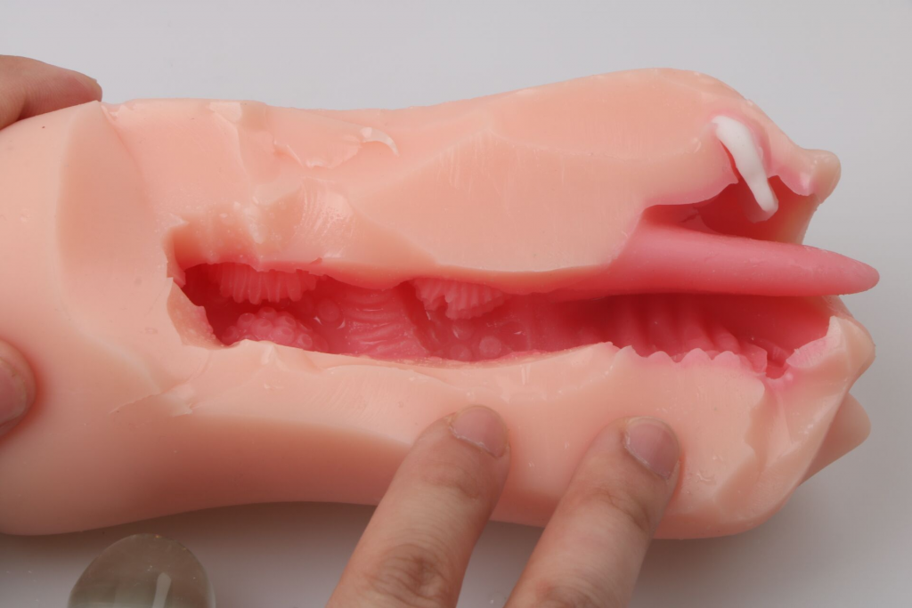 康康通道,双层结构,舌面光滑,没有质感,但做了这么长时间,可以旋转搅动你的牛志,刺激小偷。而且,舌面虽然没有纹理,但还原了舌下系带,恩,合理。牙齿很软,上下只有一小排,基本上是口杯的标准。上颚的结构凹凸感很强,属于加强感度的夸张处理。小舌和扁桃腺也还原,作为深喉的第一个刺激点,这个地方贼顶,体验细说。继续往内是上下两个大肉球作为深喉的第二个刺激点,然后触底。