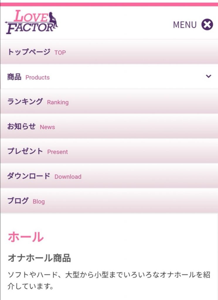 嗯,基本可以断定,LOVE FACTOR是一个正规的日本牌子,而且浏览网站后我发现,这个品牌涉猎相当广泛,男用、女用、抱枕、炮架甚至调教用品一应俱全。。。