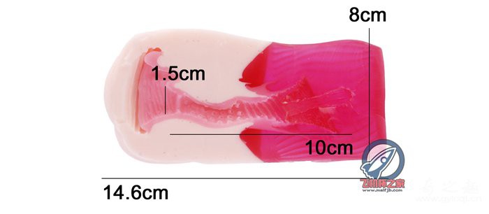从通道剖面可以发现,实际上本作采用了三种材质。入口处为双层入口结构,进去以后是一个吸盘式的大G点设计,深入到最后就是本作特色的宫口结构了。和一般的宫口系机体不同,本作未采用传统的环装收束结构,而是用了个类似于葫芦上半段形状的设计。同时,也没有传统的大空腔,取代而之的是”葫芦”内部极其狭窄的小通道。不过该设计满足本人前文所述的宫口机体两要素,因此想必突破感不会差。只是这葫芦顶端部分有点薄啊,看着就觉得容易被艹坏……