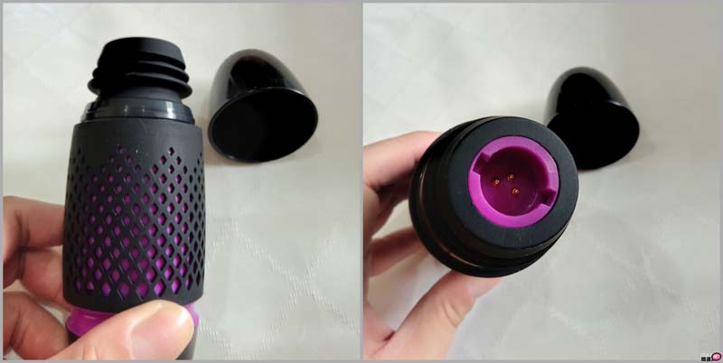 主机前端盖子打开后,有个凹槽卡榫,是用来连接棒棒的,中间的三点对应连接帮棒棒加热和震动。