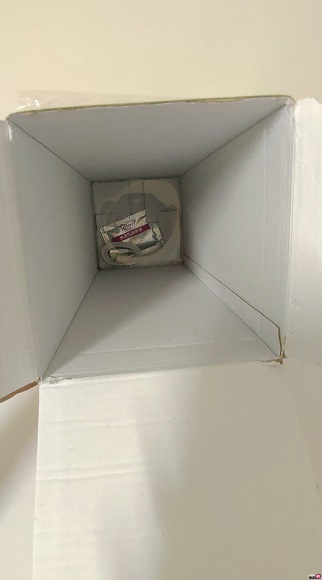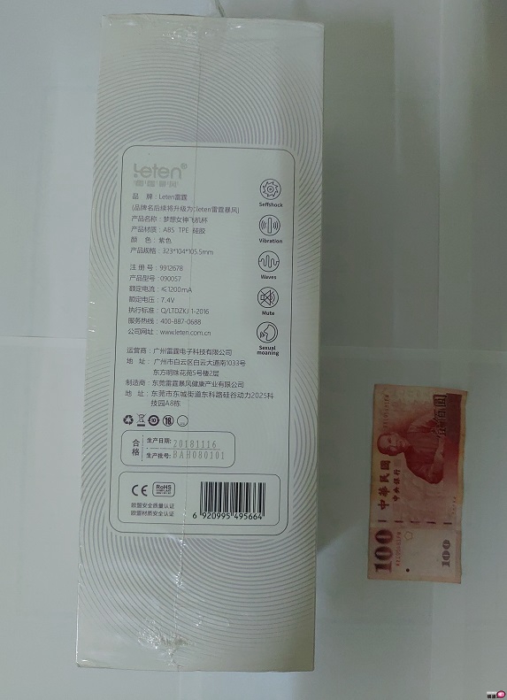 箱子的大小如下,第一眼看到真的吓到,真的蛮巨大的。以下介绍都会适时的放一张一百元纸钞当比例尺;另外箱子的包装十分隐密,外观没有写任何情趣用品的字眼,各位网友可以放心取货。