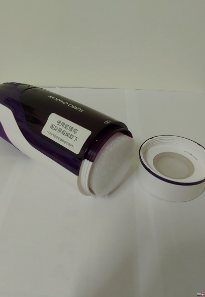 名器本体外观有提醒字样「使用前请将固定海绵取下」,打开前面的盖子,取下固定海绵。千万急不得,让自己受伤了。