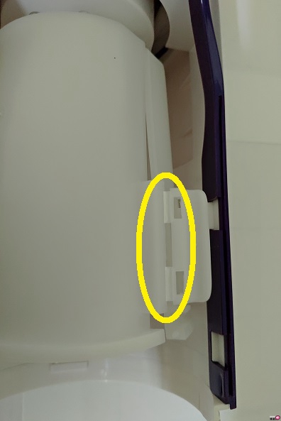 胶条固定座,旁边的锁扣(下图黄色圆圈处)感觉很脆弱,使用时千万要小心。