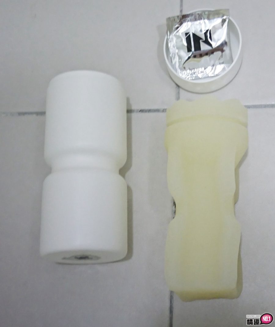 脱去外面热缩套膜后就是纯白色的塑胶杯身,还有上盖,这完全可以假装是保温杯呀!好了,外观这幺朴素好像没有甚幺好介绍的,打开杯体倒出来看到里面的胶体部分这才是重点,长长的胶体,足足有15公分,而且罐体底部没有海绵佔空间(虽然海绵有缓冲功能),使用上要先倒出杯体在安装入杯内,胶体上面有一圈沟槽要卡在杯口上的,不要一开箱就想着插入冲刺,否则手枪枪管是会被刮伤的。