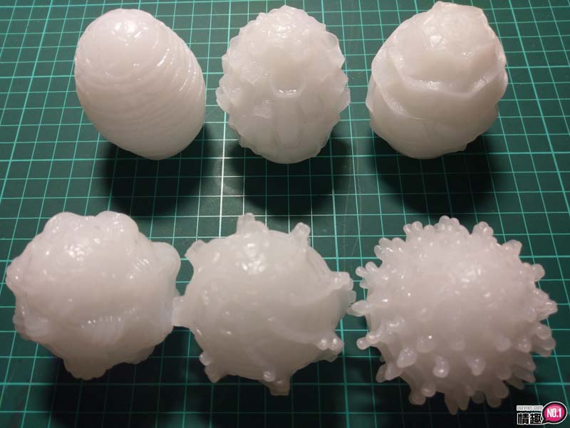EGG-016(TORNADO)具有螺旋状的软刺,又具有横向的波浪,算是介于013和015之间的产品,螺旋状的软刺比横向的波浪突起高度大,在使用的时候,增加旋转,会使得效果比只有前后抽插来的好,算是六款里面特别适合旋转抽插的一款。EGG-017(SPHERE)球状的突起,刺激感很高,加上不平行的纹路,让刺激感会有变化,跟方形盒状有类似的快感,但是不一样的感受。射精效果也很不错。EGG-018(SILKY2)绵密的浅横向纹路,对于用过自慰套产品的人来说,有点无味,不过,也不是完全无感,浅浅的刺激,让人可以慢慢的享受快感,不会一下下就射精结束,特别适合女生帮男生前戏的时候。有点害羞的上传一个使用蛋蛋自慰套的影片。
