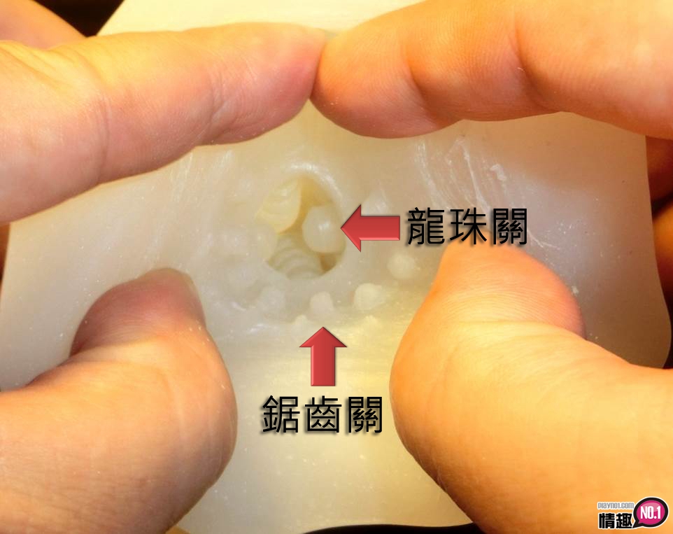 掰开入口后一看不得了!爽哥从未看过这样的通道,第一关是由一圈圈小锯齿所构成的内壁,爽哥命名「锯齿关」,看来是可以顺便割包皮的好物啊(喂!