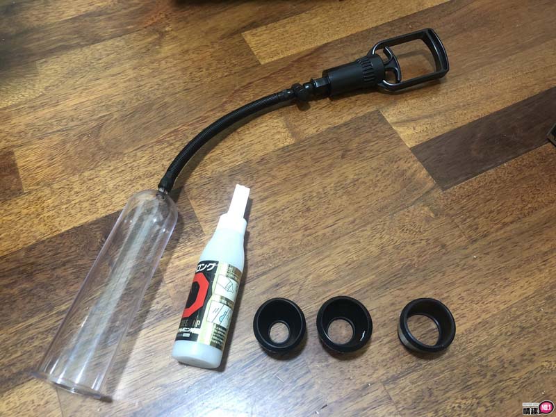 再来就是内容物了,里面有一罐传说中的D强化液,一套帮浦与三个橡胶套环。套环有分三个尺寸,依照自己的需求来上套环喔。