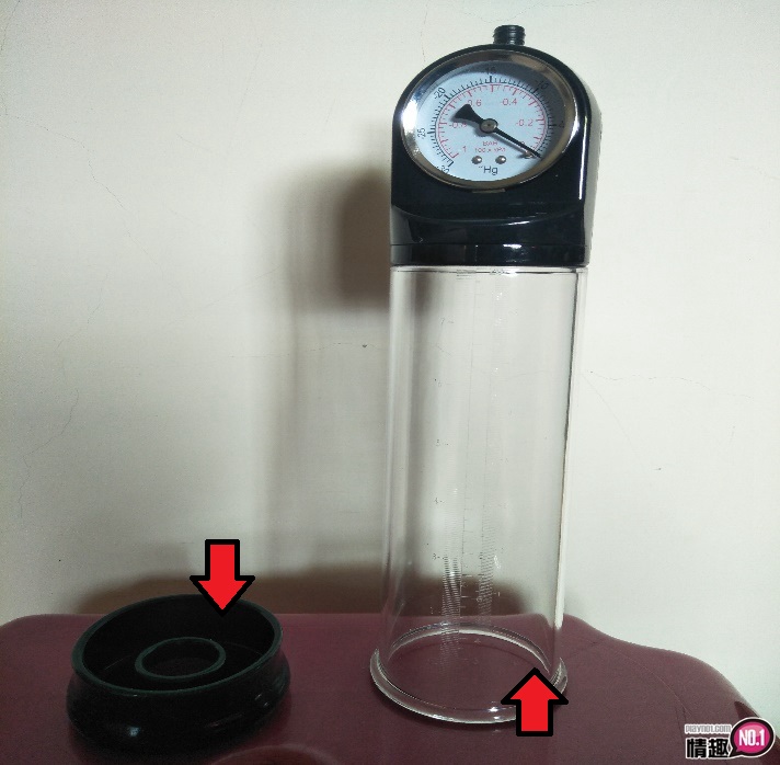 助勃器在学理用途上是藉由外力导引血液集中在小头上利用抽气形成腔内负压的方式”拉伸”小弟弟!但有趣的是这款助勃器是用”手”来控制抽气速度,可以随时停下抽气动作无须再开开关关按钮而”负压錶”的功能,小小声觉得很有科学依据。就是附上了这个负压錶,让使用者一眼就看出你的小弟弟能承受多少负压等级不需要再凭感觉来断定小弟弟撑不撑得住。而且,还能利用负压錶的数据来让小弟弟”百尺竿头、更进一步”!就这点来说,算是蛮科学的量化工具。而透明腔体总长根据包装图示为29cm(实际丈量为30cm),材质为透明塑胶製成。除能很明显直观的看到在负压状态下小弟弟的变化外,在腔体表面还附有刻度,可以看到长长了多少。这可以让每天持之以恆的人纪录到底有没有明显的效果改善。至于可拆卸式的开孔橡胶垫,当中开孔的大小恰好能放置50元硬币,而且橡胶具有一定程度伸缩性应该都适合东方人的小头直径。
