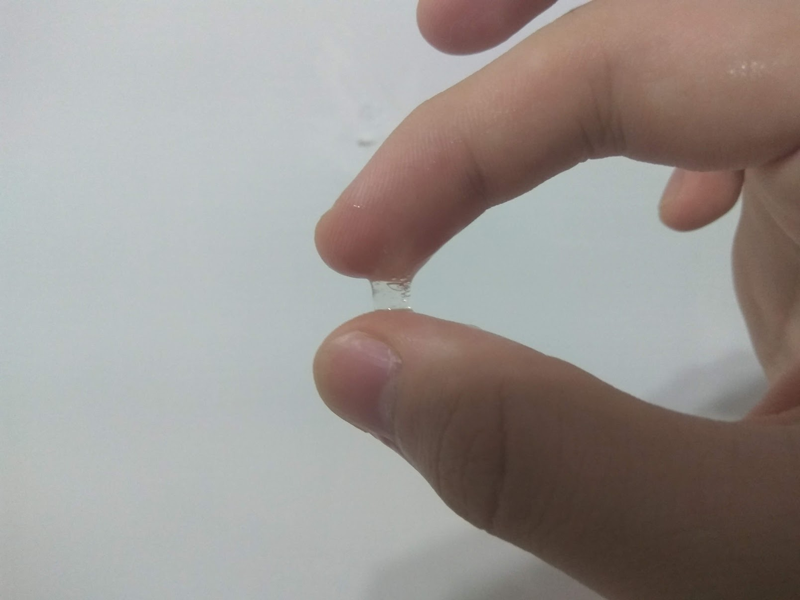 而本款润滑液《超便利免洗润滑液 G PROJECT×PEPE》是属于偏向于水性的润滑液,拍照时原本想呈现出润滑液的牵丝感,但刚挤在手上时润滑液就会随着重心滑动,上方手指的间隙便是牵丝的长度的极限,个人认为此款润滑液比较适合偏好水性润滑液的朋友使用。