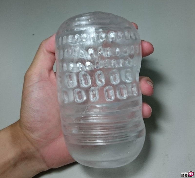 解放GU,握在手上的样子,明显体积不小,但因只有薄薄一层不重。一开包装闻了一下,没有甚幺硅胶臭味。上手也不油腻,对不油不臭的自慰套总是特有好感,可以安心玩不弄得到处油。