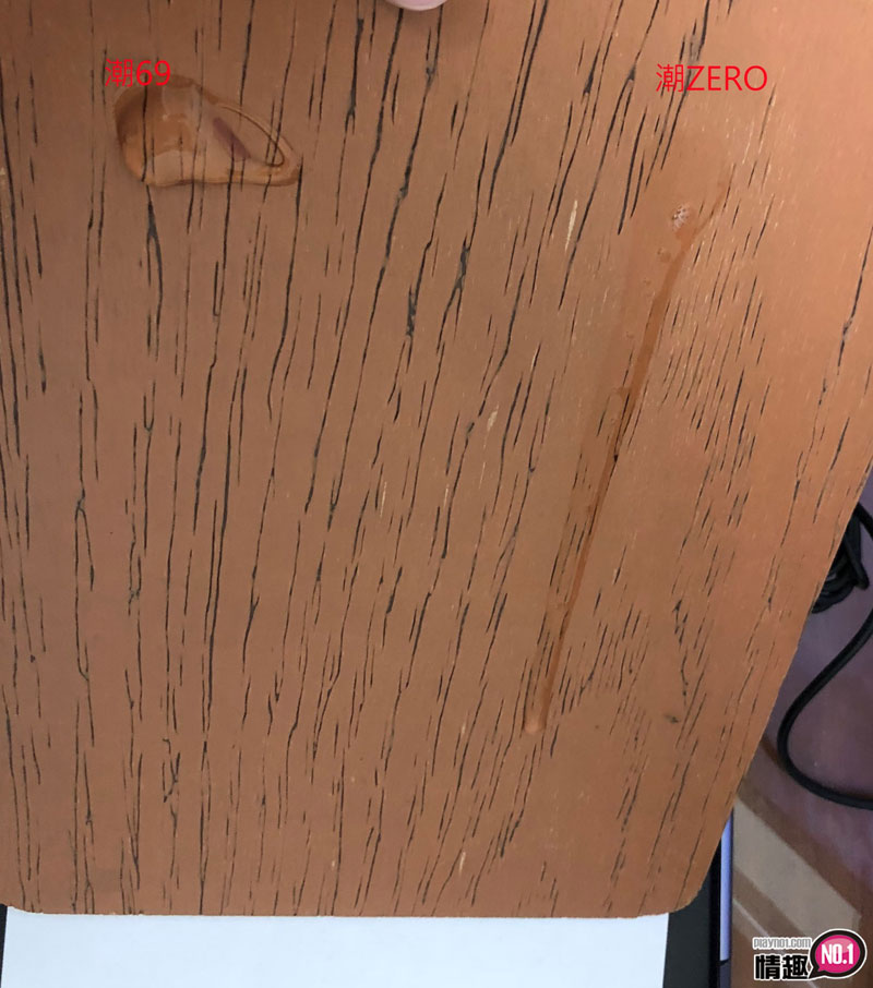 接着测试黏稠度,使用倾斜的板子测试,就如同包装上的标示,潮ZERO完全没什幺阻碍就滑下来,而潮69几乎闻风不动。另外我也大概比较了两者的味道,可能黏稠度会影响,潮ZERO的味道是比较清淡柔和的香味;而潮69的味道是比较浓郁的花香。