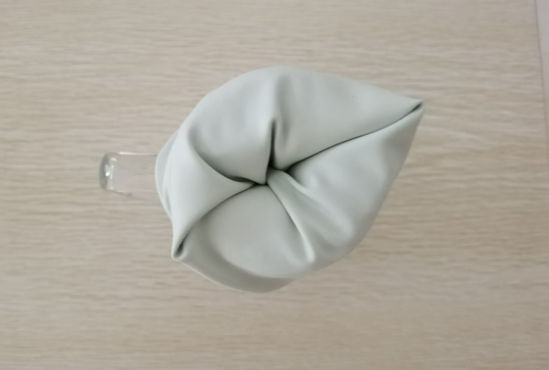 第三步,塞入杯中,稍微放进去一点,免得用力过猛滑掉。