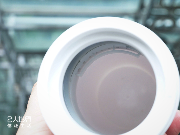 这款Tenga Aero的设计是把胶体放在杯子里使用的,打开盖子,涂抹润滑液进入后,首先会先感受到一圈紧紧的硅胶环,