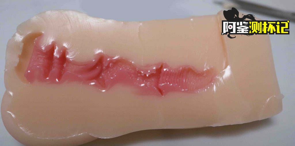 前段入口处较为紧致,可以排空气提升刺激,也不会有油漏出(拼多多杯子的阴影….),内部采用双层设计,前段有微微的突破感,中段的仿真褶皱通道设计,真实度较高,后段的设计越来越紧,一口气深入进去,爽得一批