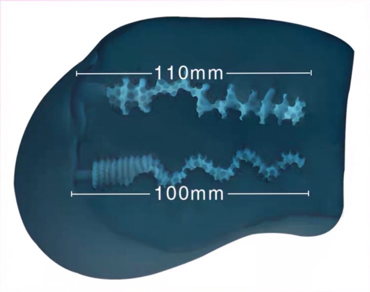 从上图牛逼的X光透视中可以看出机体的通道并不复杂,走的是仿真路线,总体没有什么浮夸的设计。前部通道较为宽松,内部排列着一圈圈的褶皱,表面密布着肉粒凸起。