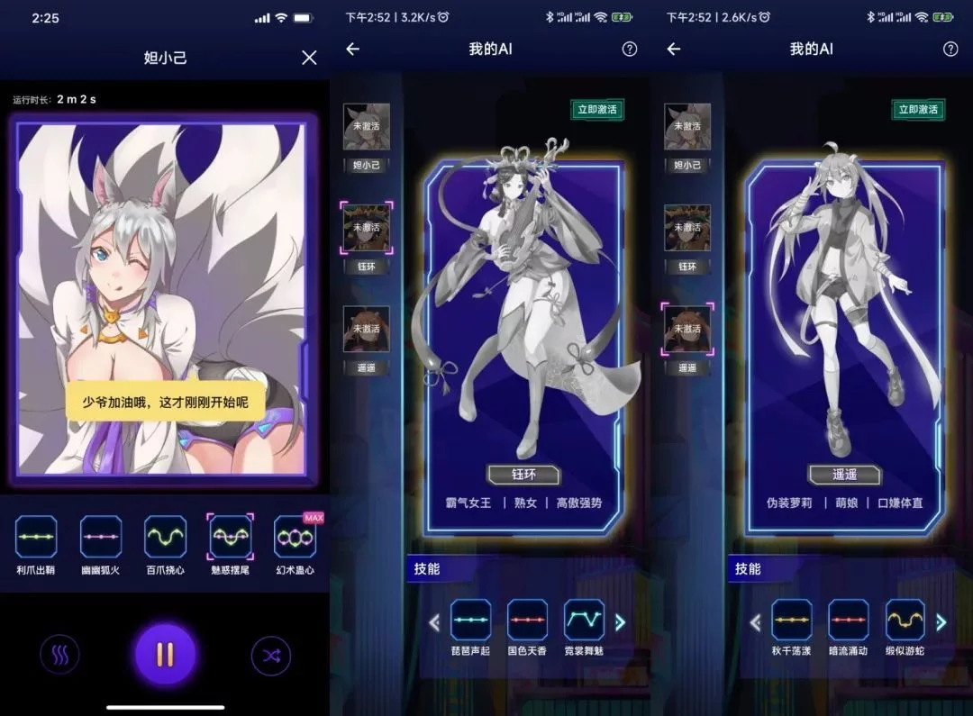 (图源:雷科技自制)当然,背景设定不是重点,和用户产生互动的虚拟形象才是重点目前,元力Fun应用内部拥有三个虚拟角色,分别是兽耳狐仙妲小己、琴瑟仙女钰环以及都市少女遥遥,这三个角色都有独特的立绘,搭配上不同的背景故事,打造出风格各异的人设。
