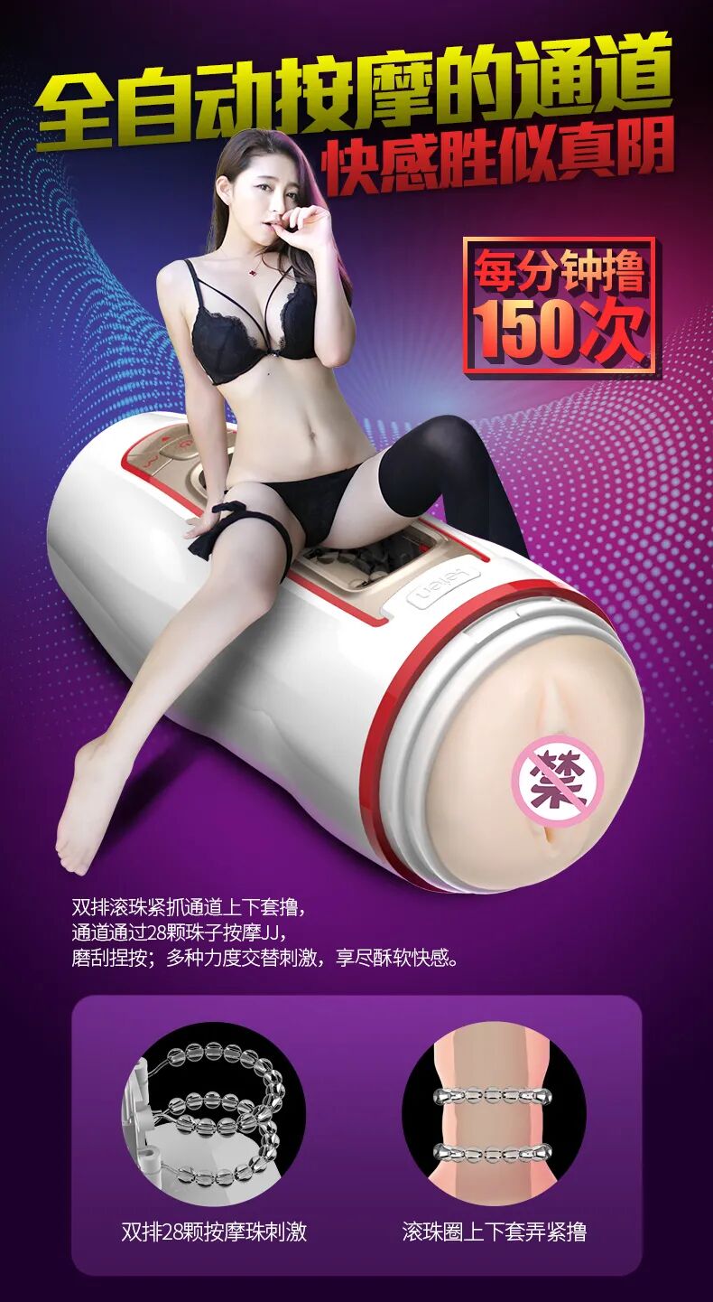 只管进入,全自动,不用动手!雷霆撸霸飞机杯,全自动套撸模式,每分钟150次,程长约55mm,告诉上下往复内为虚拟肤质4D多褶通道,夹吸套撸,嫩滑刺激;7档加速,通道自动收紧,是啪啪速度的5-7倍,强度刺激。