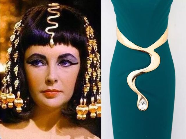 宝石绿,典雅大气,搭配金色的蛇纹造型,非常高级。