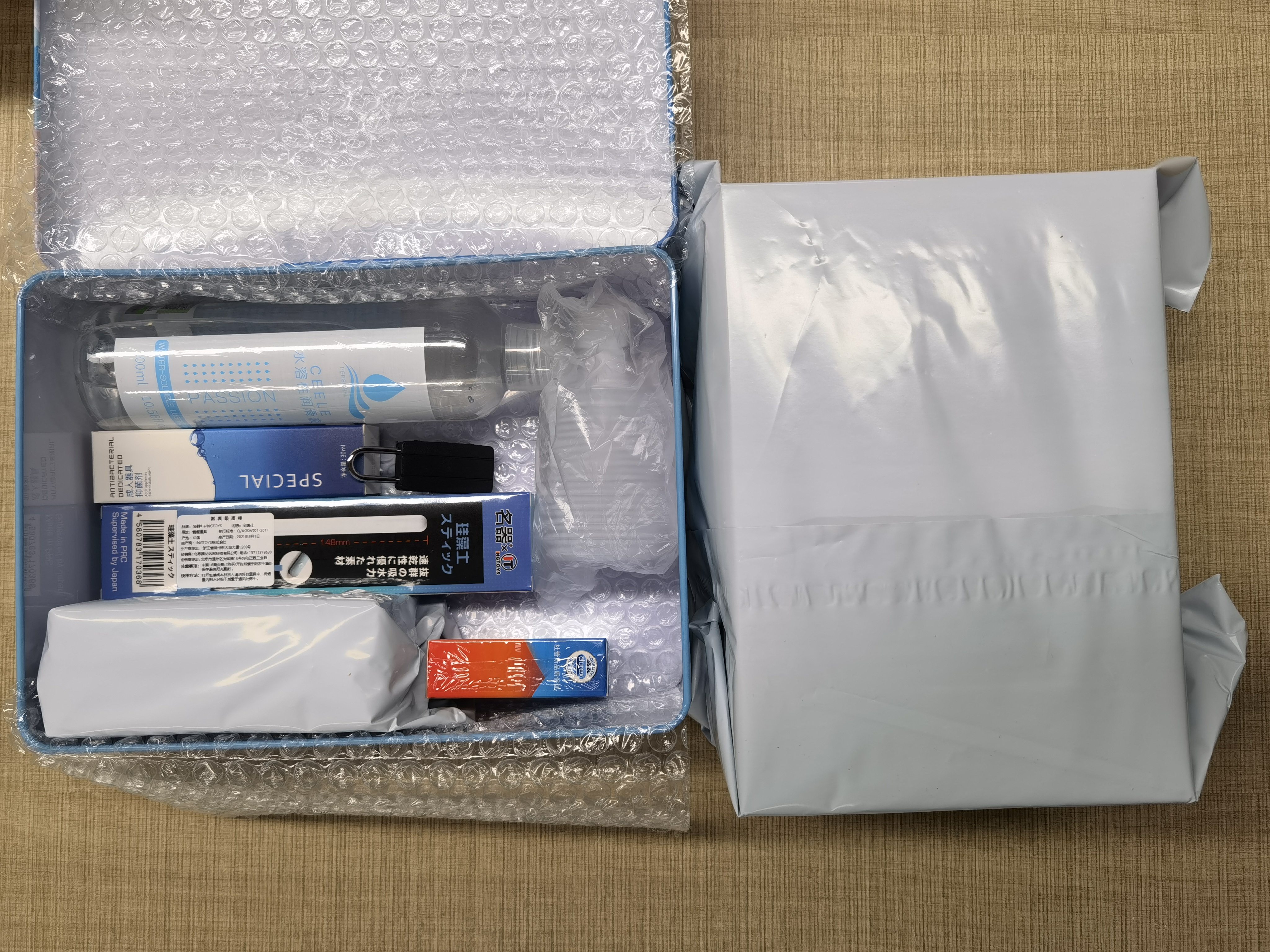 另外会送很多配件,像润滑液、清洗器具、保养粉、清洗液、收纳袋、吸湿棒等等,在每次使用后可以使用这些东西,给美臀做好保养,清洗干净,保养粉涂抹均匀,就可以很好的保护杯子减少出油延长使用寿命。