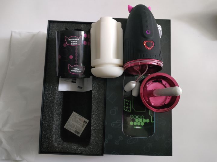 拆卸之后,就可以清晰的看到YUU小恶魔和其他电动飞机杯的特别之处: 双马达强力震感设计、自带加温底座、高度仿真胶体通道…. 功能是不是很齐全呢,自动吮吸、强震包裹、快速加热、真人发声、一键爆发什么的,应有尽有。