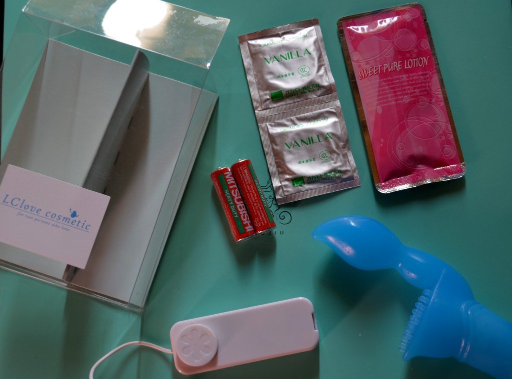 包装虽然不算太豪华,但里面的东西不少,有电池、清洗液和两个冈本套套
