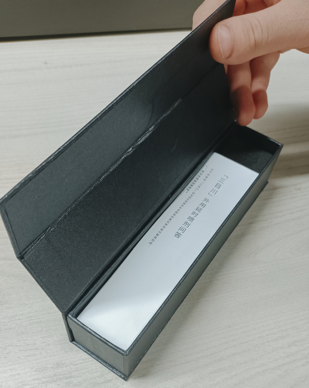 古典黑长方盒翻盖磁扣的包装设计很有质感,除了双语中日文的产品说明外没有太多其它修饰,很符合我这风度翩翩的气质(实则闷骚👦)
