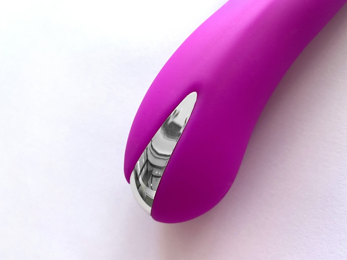 产品采用了百乐公司具有代表性的紫色,整体设计上较上一期测评的加热震动棒来说,更具简约感,手柄处ABS电镀装饰让产品更具设计感。
