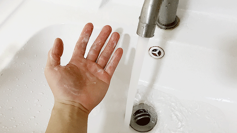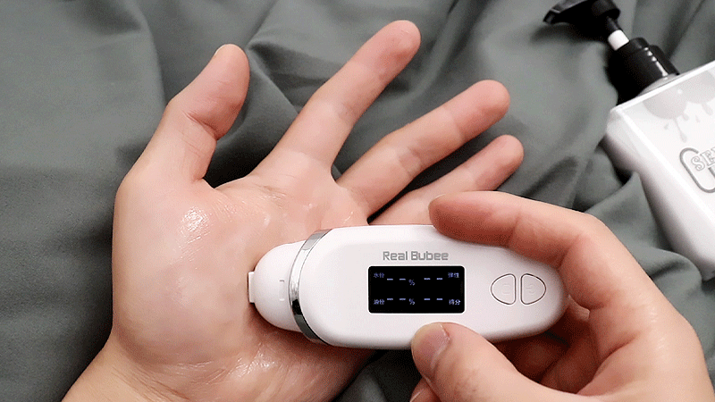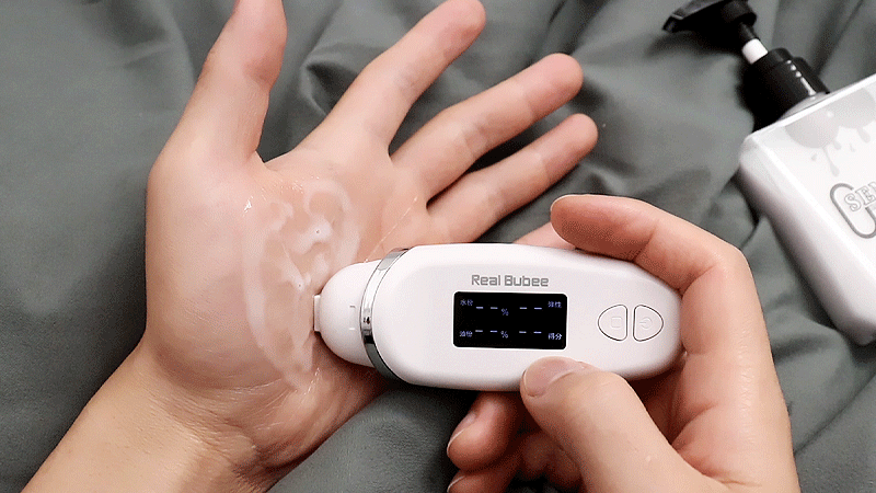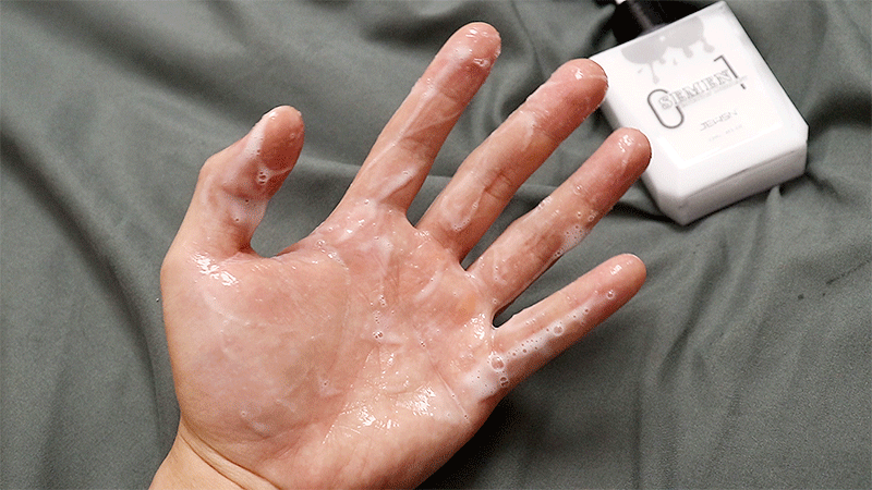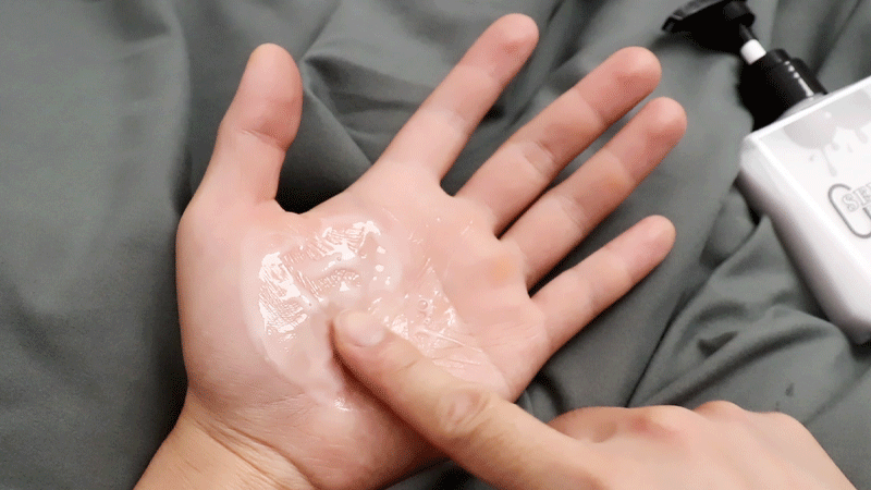 通过右手来摩擦左手的润滑液模拟实战时的场景