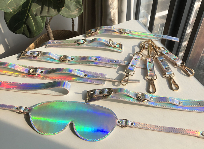 套装中所有道具的边缘(除散鞭外),都采用了闪粉油边工艺。仔细看每件道具的边缘处,就像奶油蛋糕上的糖霜,嵌满了彩色的颗粒,甜而不腻~