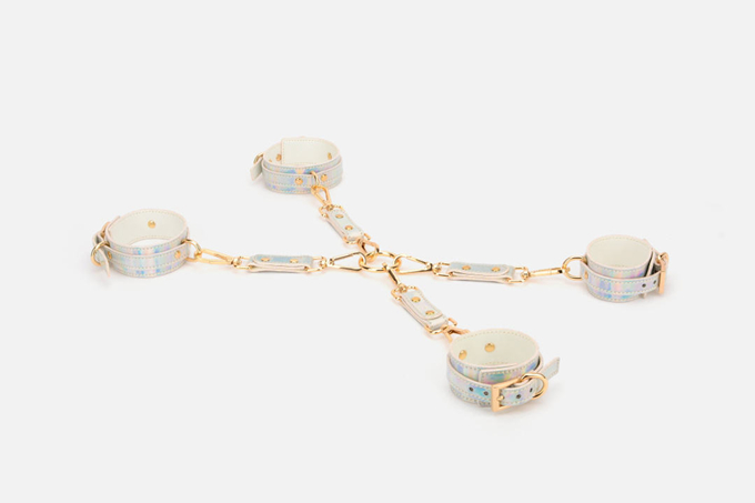 十字扣可组装或拆分,拆分开来就可以得到四个单独的双头扣,可用来单独连接**或脚铐,也可用十字扣将**脚铐组合起来,玩法多变,肆意玩耍由你掌控。