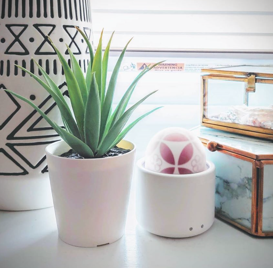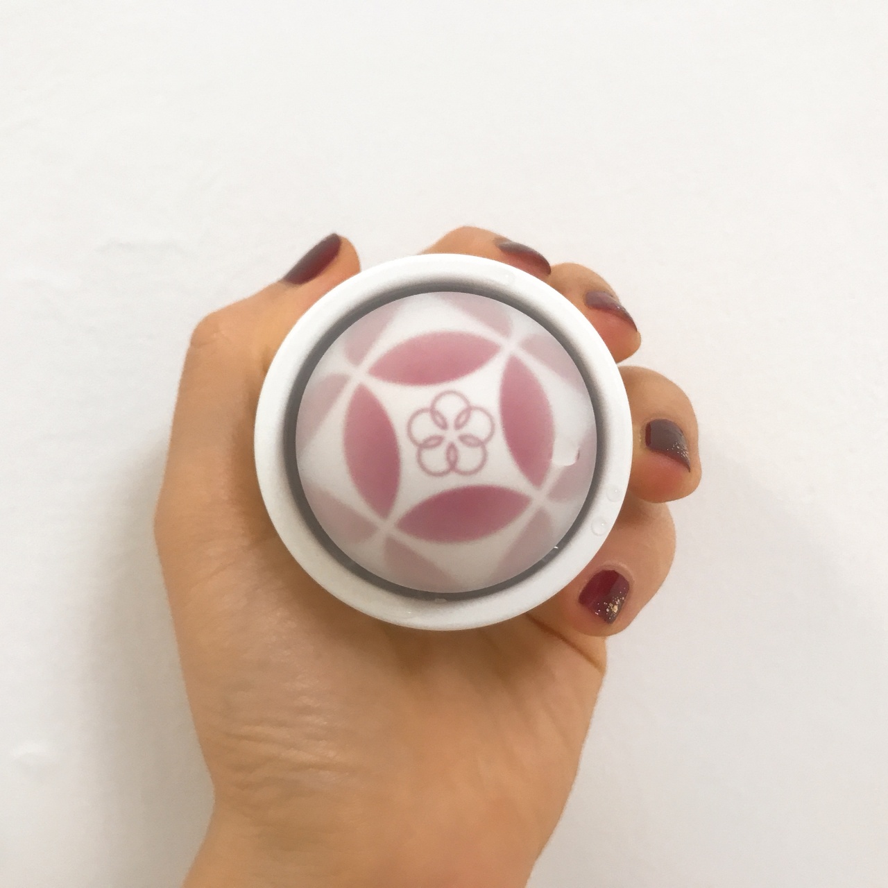 打开盖子以后可爱的小球就映入眼帘了,从上往下俯瞰,正中央一朵小花被四片叶子围成一个圆。从侧面看去,像是四叶草周围散落着一朵朵小花,漂浮着一层薄薄的薄雾。这个造型充满质感又带着趣味。