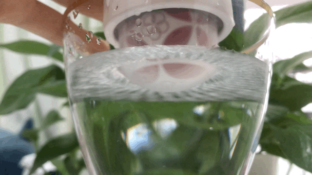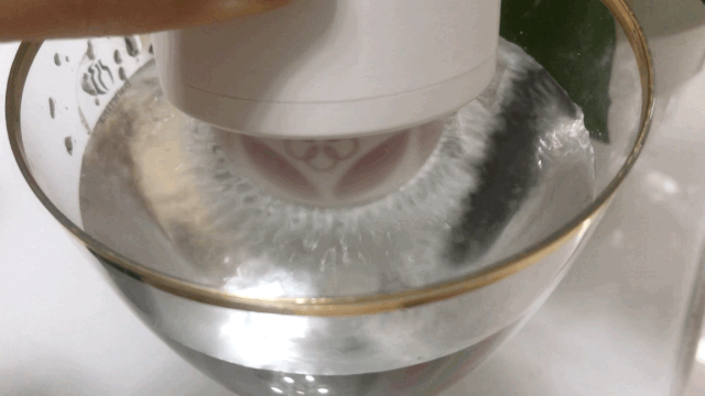 当按到第五次时变成一种一震一停的有节奏震动,规律的水波纹从中心向两边均匀散开,随着震动小水珠也会飞起来呢!