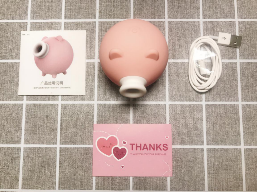 打开盒子以后有:小猪吮吸器,充电器,说明书和感谢卡四样东西。