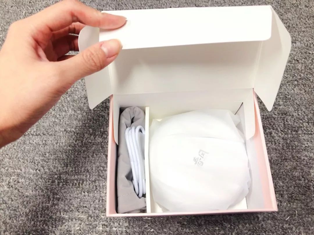 打开盒子,两个粉色的小玩意儿瞬间俘获了我沉睡已久的少女心。咽了咽口水,发现下面还有一层。充电盒、收纳袋、说明书和数据线都在里面啦。