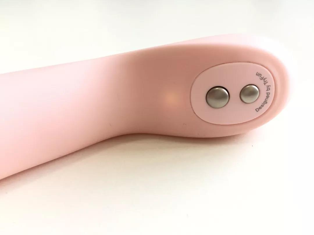 “鱼”的头部有一大一小两个按钮,较小的按钮负责一键加热。使用时长按2s,LED灯亮起,慢慢加热到42℃。