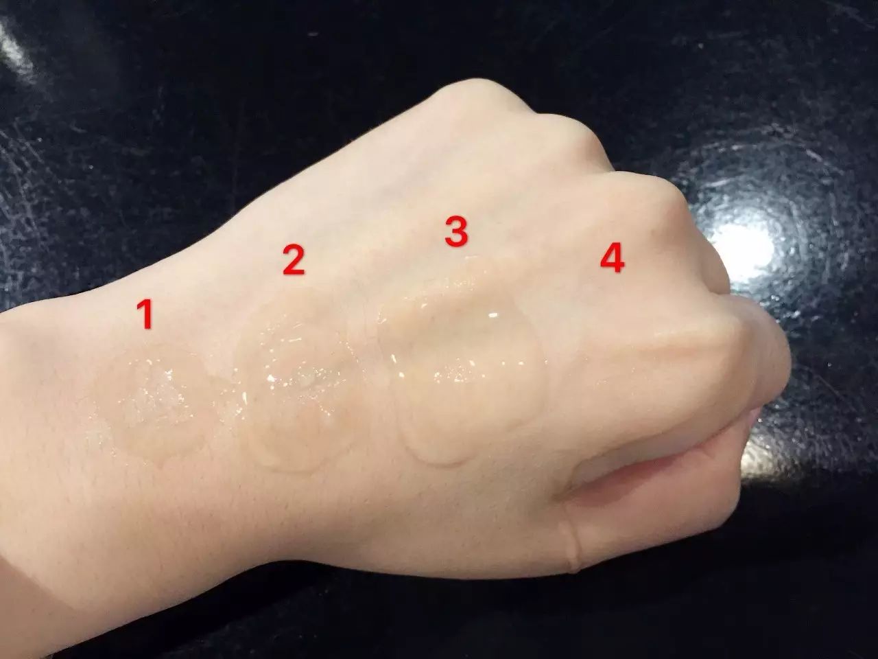 1、3 手感差不多,都是润润的,有一定粘稠质感。